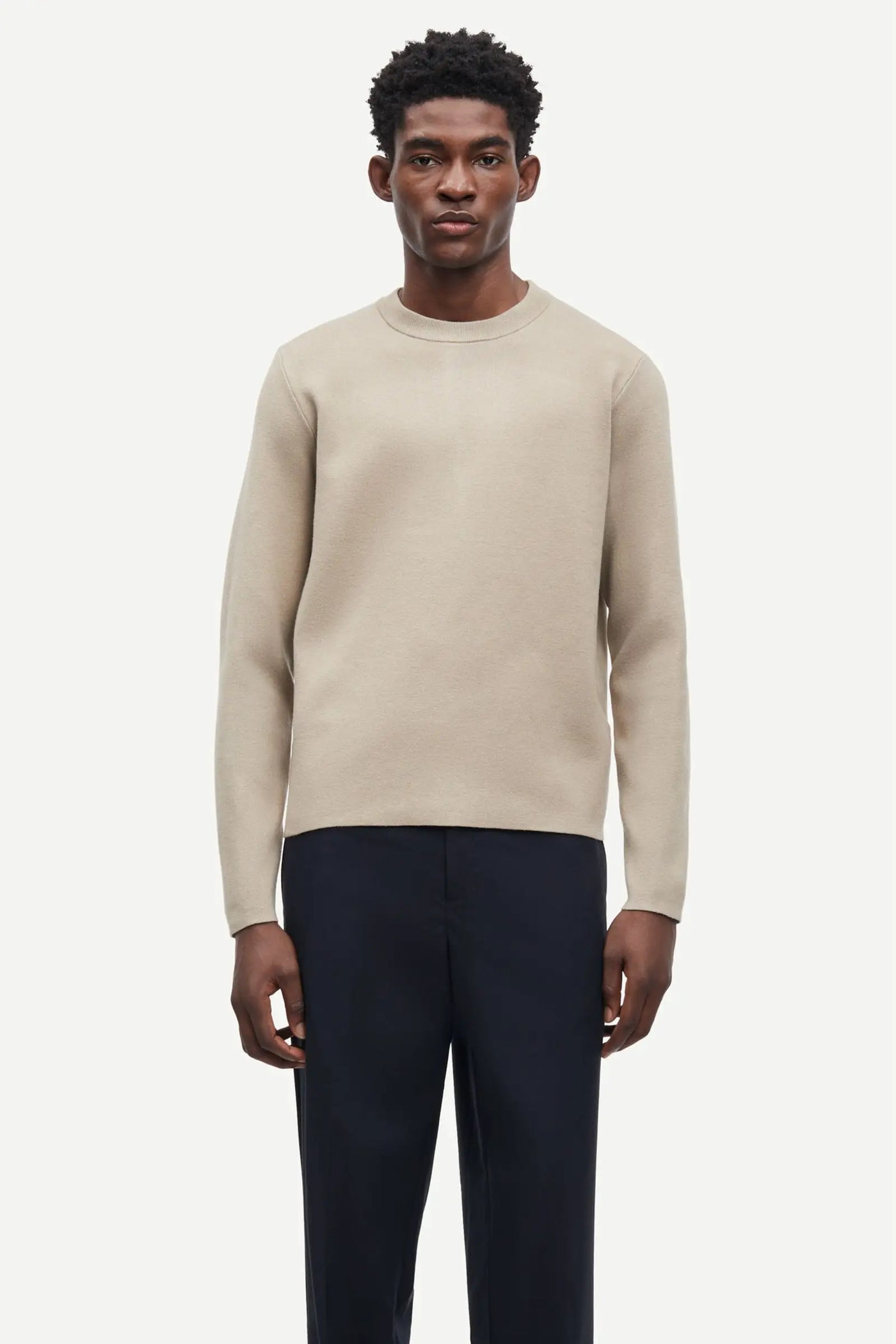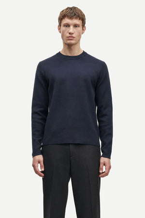 Pull ras-du-cou avec col côtelé. Point aiguille compact complet. Fil mélangé de viscose extensible de calibre fin.
