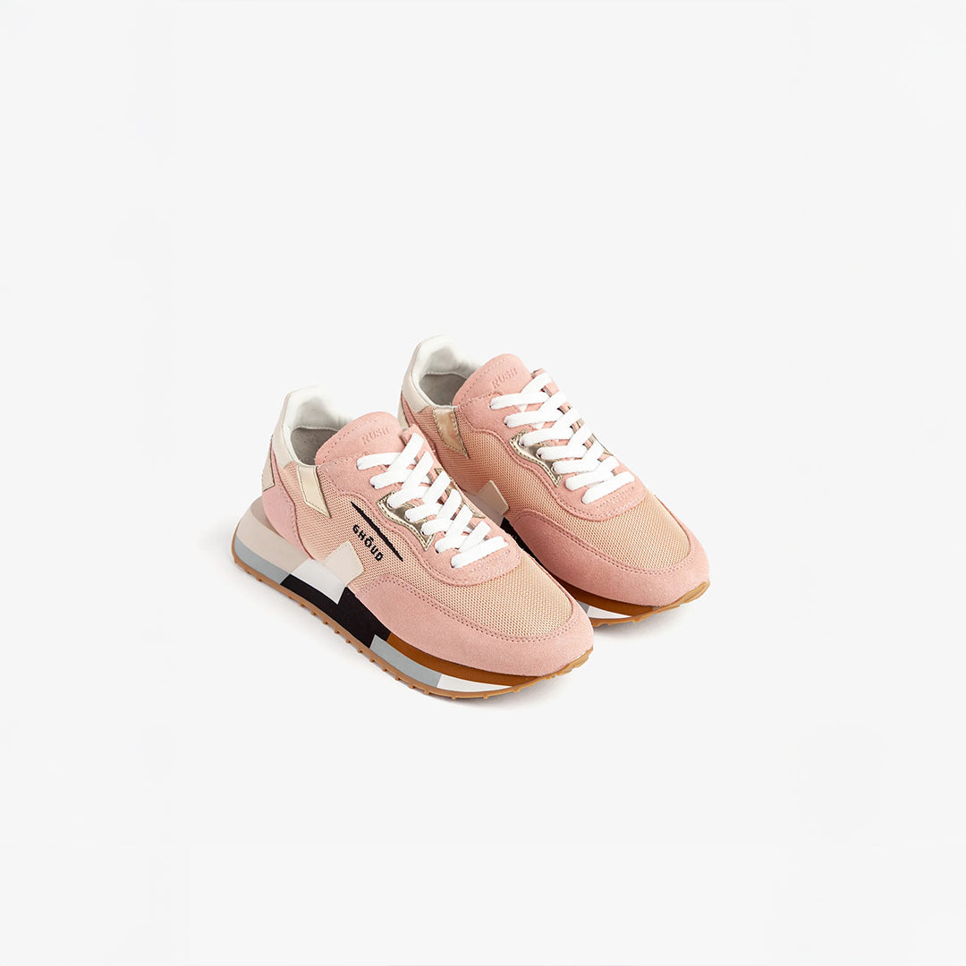 Chaussure contemporaine, fashion running, le modèle Rush Multicolor de Ghōud présente un design minimal caractérisé par des lignes géométriques et décisives.
